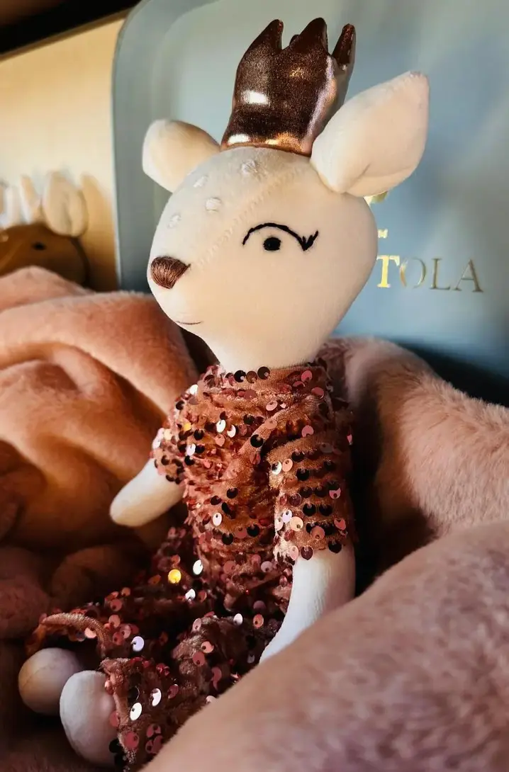 To naprawdę wystrzałowa i szalona Królewna! Korona nie przeszkodzi jej w tańcach ze swoją przyjaciółką. A gdy już wyczerpane przygodami zasiądą na miękkim bujanym fotelu, Przytulaś utuli do snu i szepnie szeptankę. Sarenka jest niesamowicie mięciutka i miła w dotyku. Cudowna do przytulania. W blasku słońca mieni się milionem promyczków i uśmiecha się przyjaźnie do wszystkich.