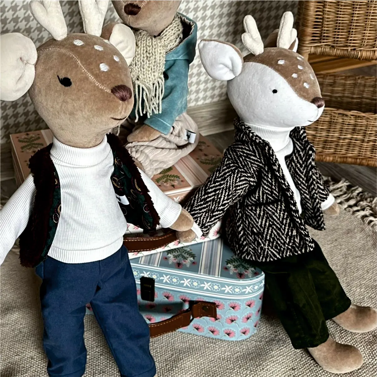 Wygląda jak mały, elegancki bohater bajki! Uroku i szyku dodaje mu płaszczyk w jodełkę, golf i eleganckie spodnie. Już czeka żeby wybierać się z Tobą na przyjęcie w zaczarowanym lesie.