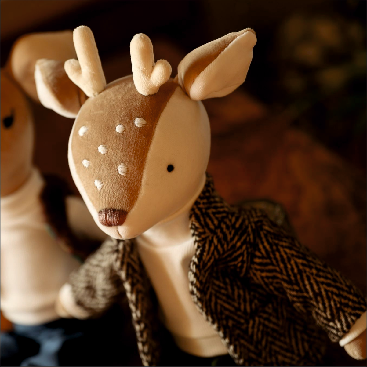 Wygląda jak mały, elegancki bohater bajki! Prawda? Świetny przyjaciel do PrzytulSków, opowiadania historii i zabawy. Może towarzyszyć podczas zasypiania i być bohaterem wielu fantastycznych przygód! Jest bardzo przyjemny w dotyku i idealny do przytulania. Jelonek sprawdzi się również jako dekoracja pokoju dziecięcego.